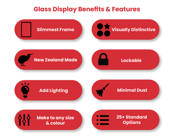 4 x Adjustable glass shelves and 1 x fixed glass shelf